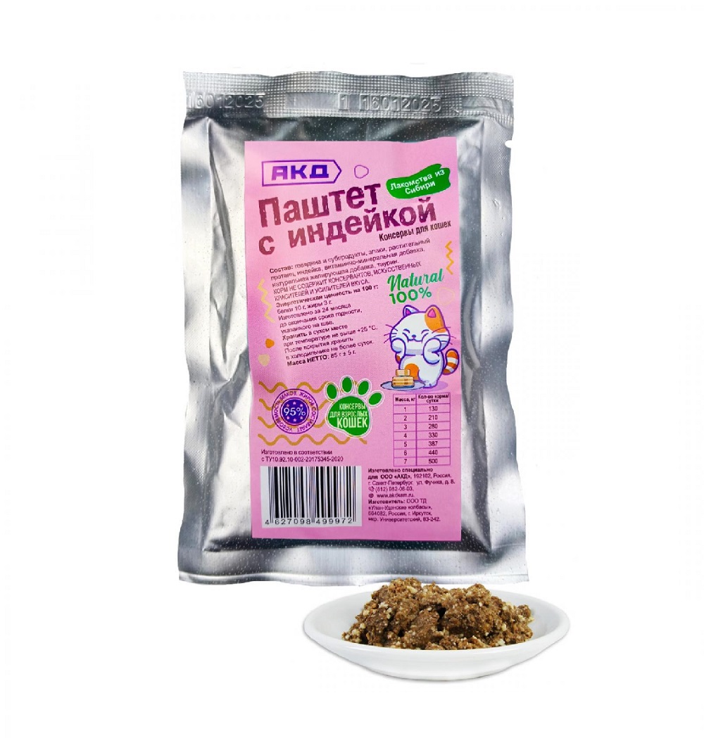 Консервы мясные для кошек «Паштет с индейкой», 85 гр.