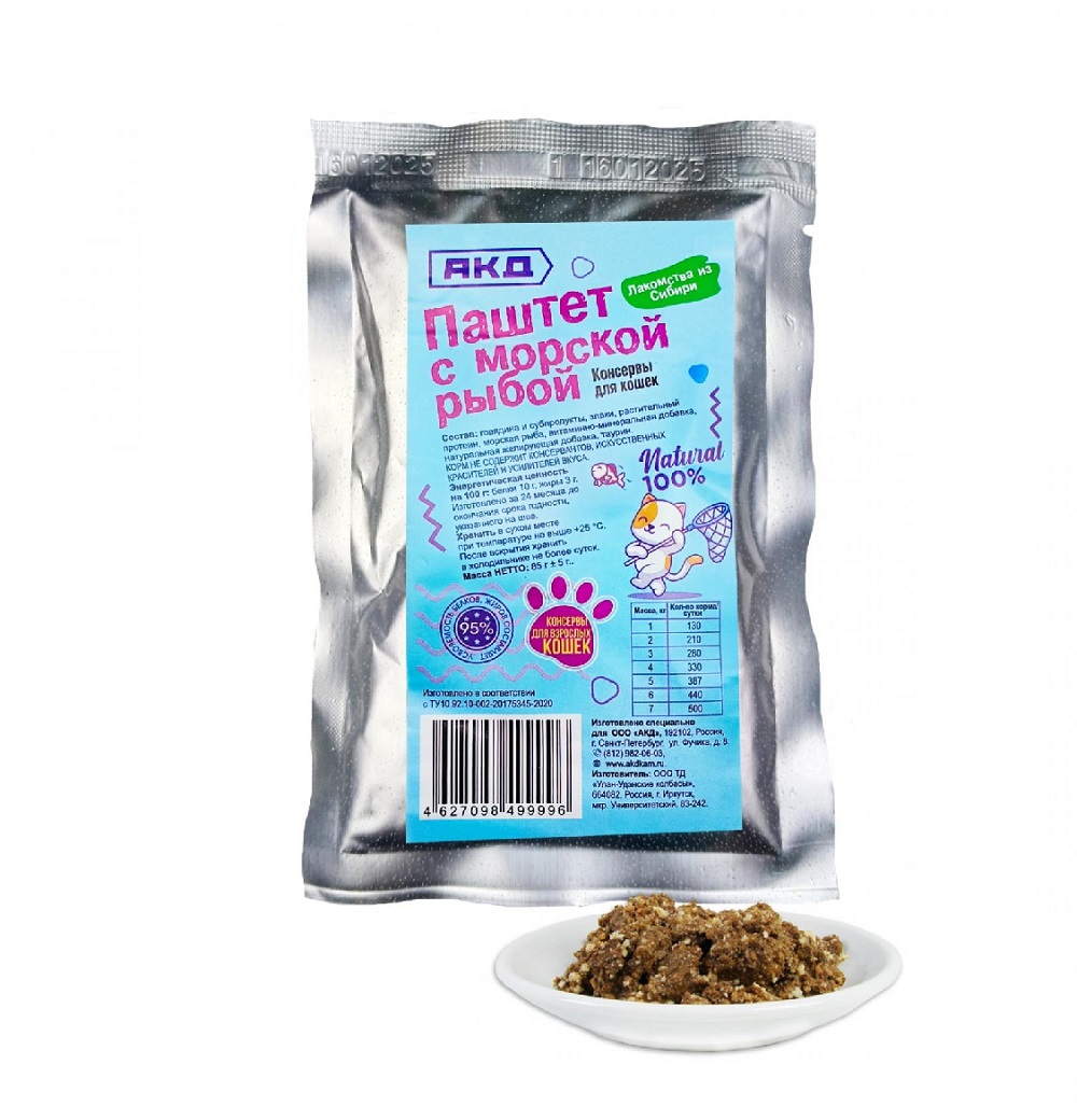 Консервы мясные для кошек «Паштет с морской рыбой», 85 гр.